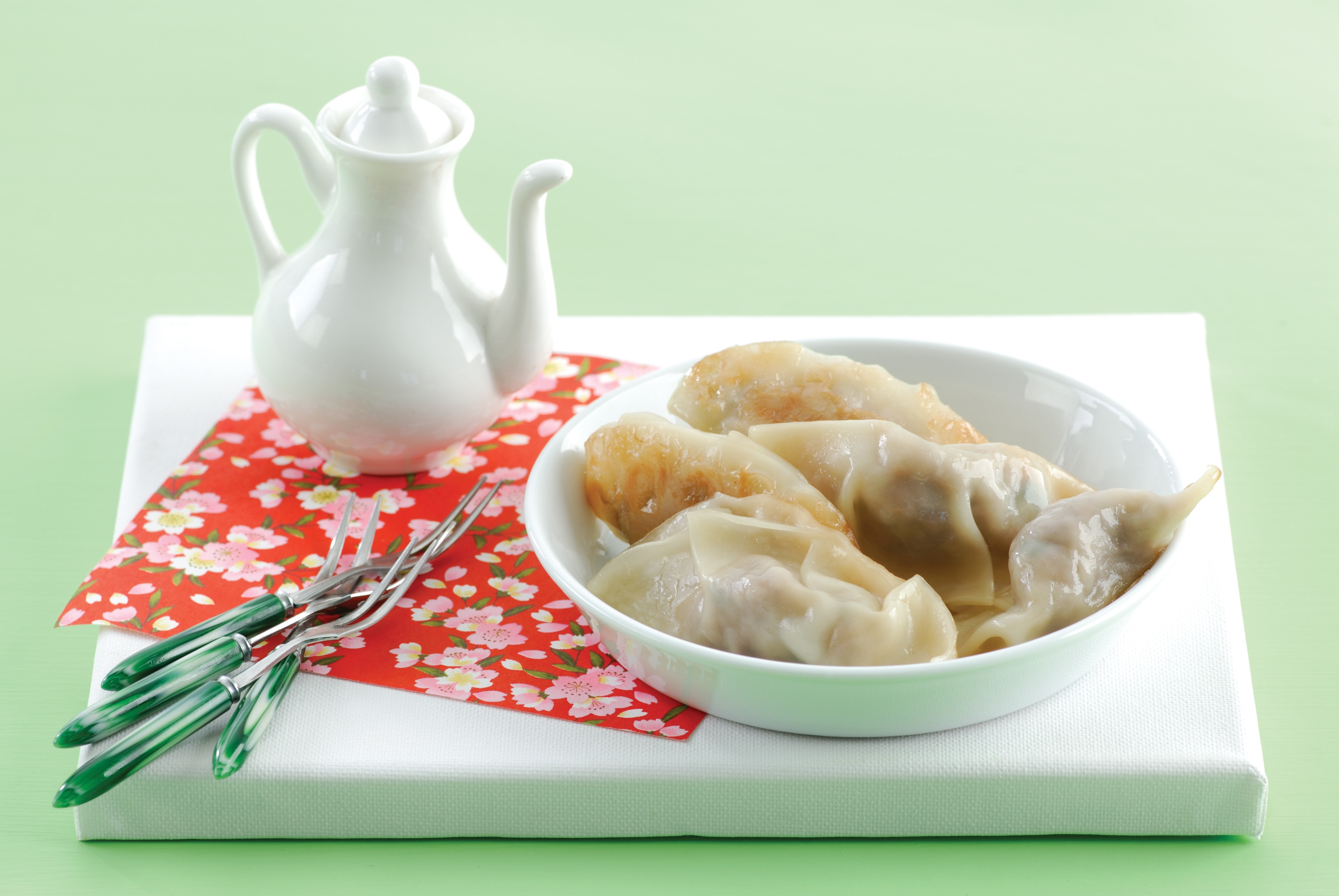 1. Heat 10ml of oil in a large frying pan. Add pot stickers. Cook without turning for 3 minutes, over a high heat until browned. Reduce heat to moderate.