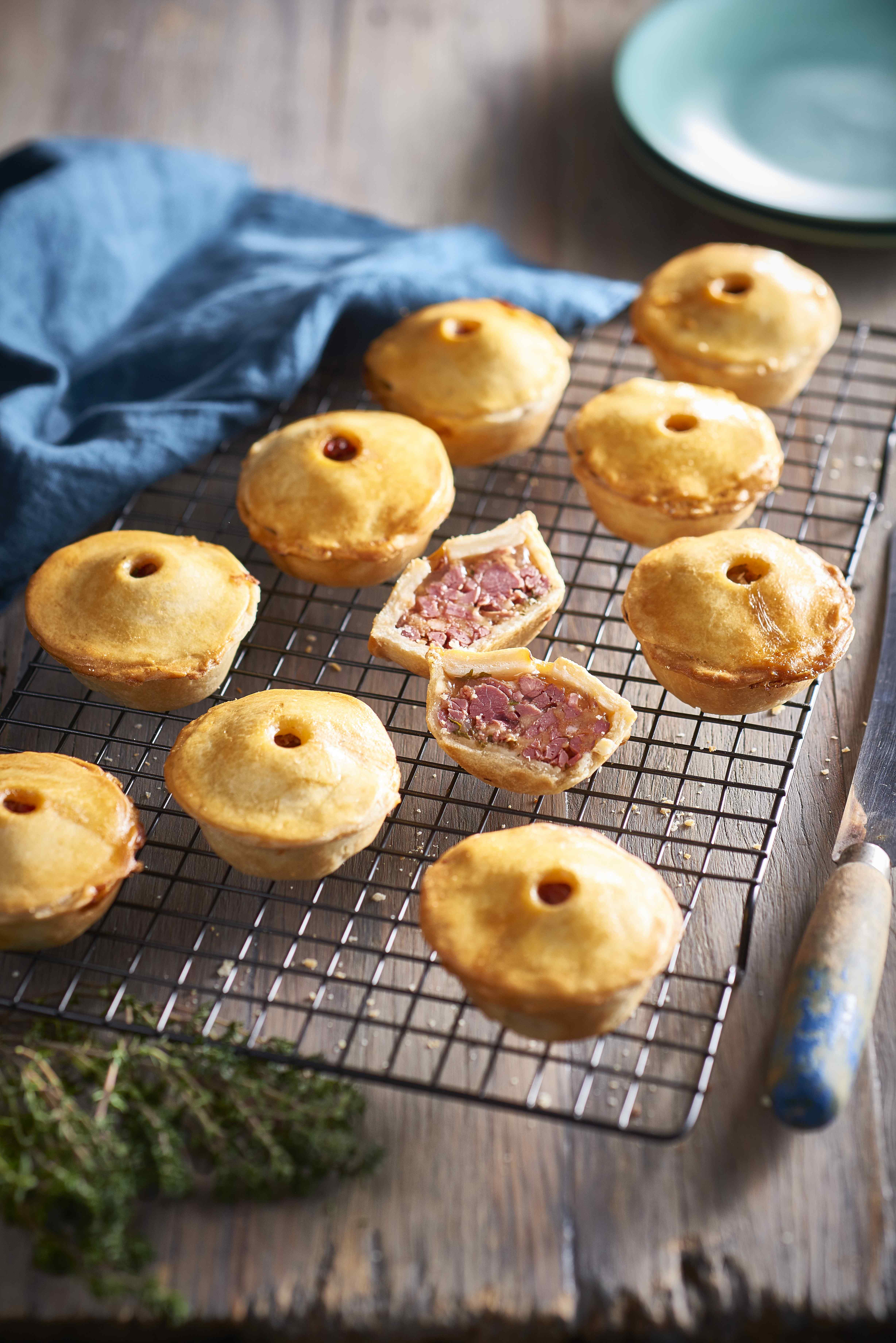 7. Place into an oven preheated to 160°c for 30 minutes then brush with beaten egg. Increase the oven’s temperature to 180°c and cook pies for a further 20 minutes. Remove pies from oven and allow to cool completely.