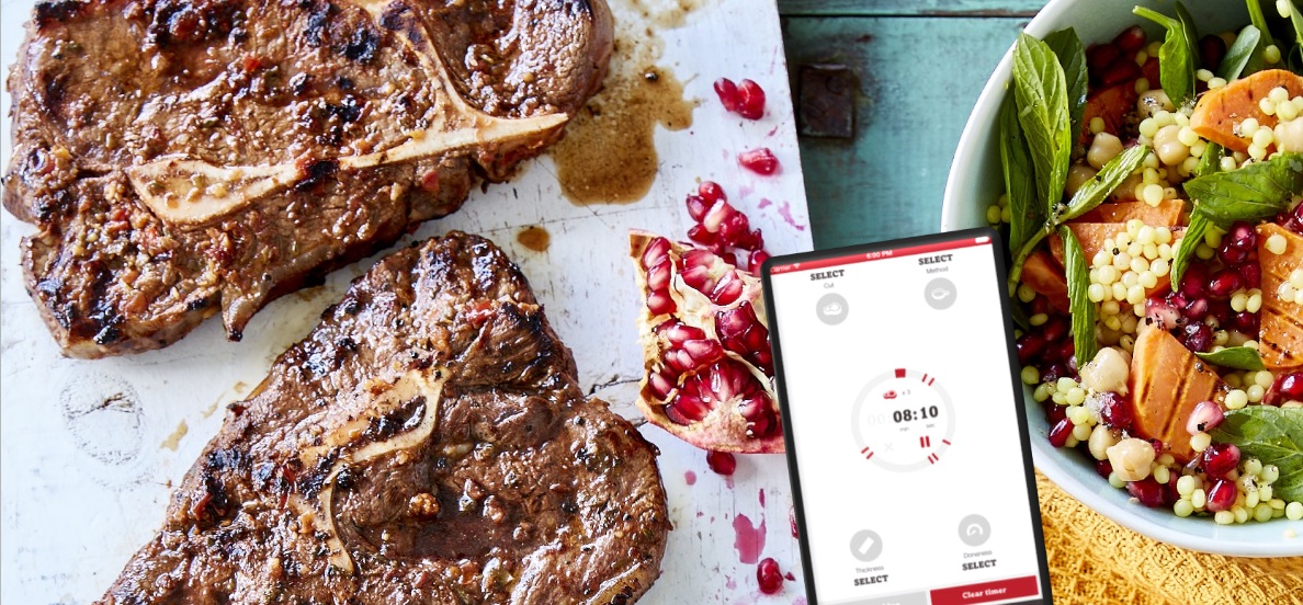 The SteakMate app is designed to help you cook the perfect steak – no matter how you like it. It takes the guesswork out of cooking steak and ensures a tender, juicy result every time. SteakMate is easy to use, simply enter the cut you are cooking, the cooking method you are using, the doneness you are after and the thickness of your steak and SteakMate will tell you exactly how long to cook it – with handy prompts of when to turn your steak and when it has finished cooking and needs to rest. Cooking for more than one? SteakMate has that covered with its queuing functionality, allowing you to add as many people to the queue so that everyone gets their steak cooked the way they like it. Got a favourite steak you like to cook? Why not add it to your favourites list in SteakMate so that you are only ever one step away from cooking the perfect steak. Not sure about what steaks to barbecue or pan-fry? SteakMate gives you a list of all the cuts recommended for cooking on the grill as well as information about each of them – it also includes all the alternate names for the same steak. Find the SteakMate!